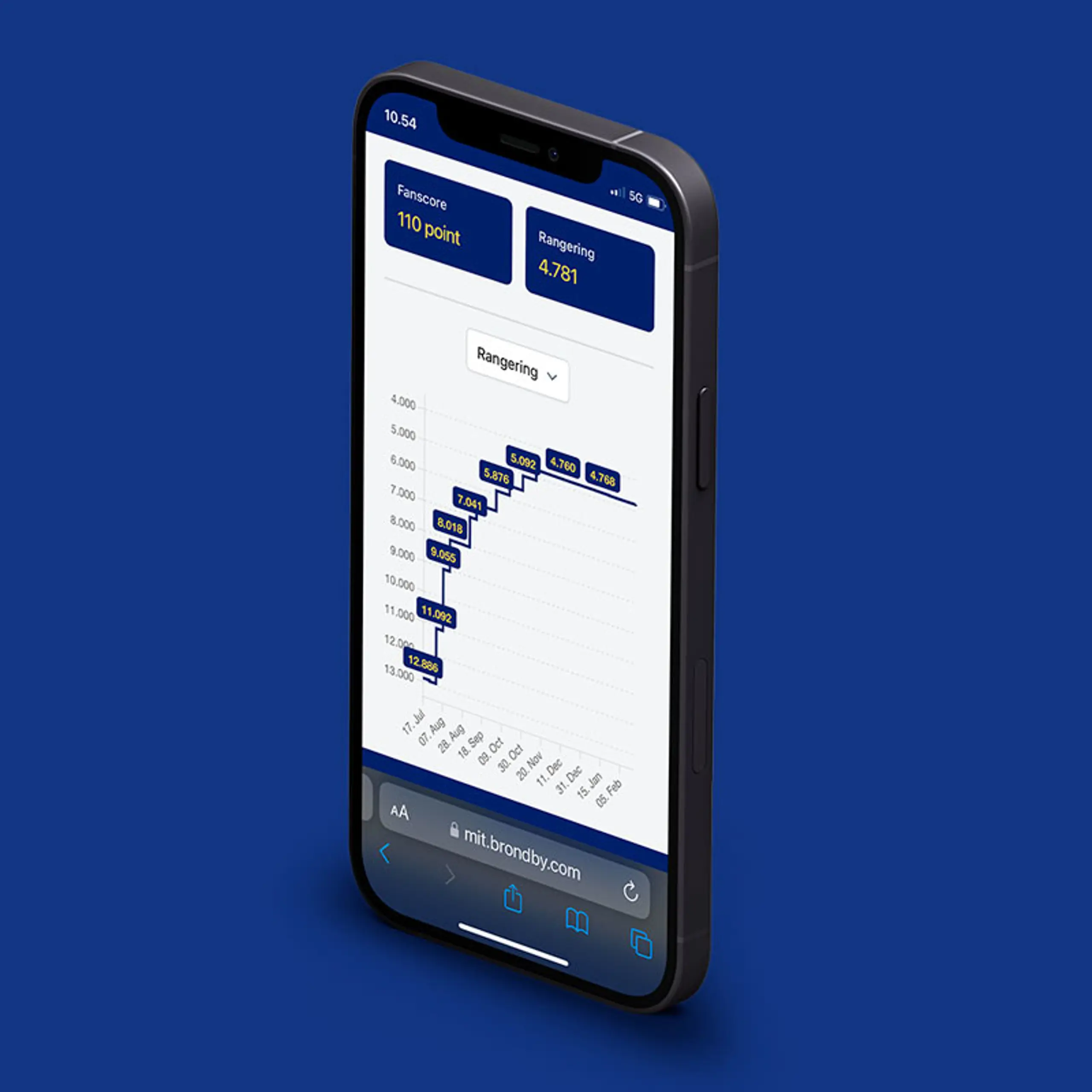 Du kan se din aktuelle Fanscore på mit.brondby.com eller i Brøndby IF-appen.