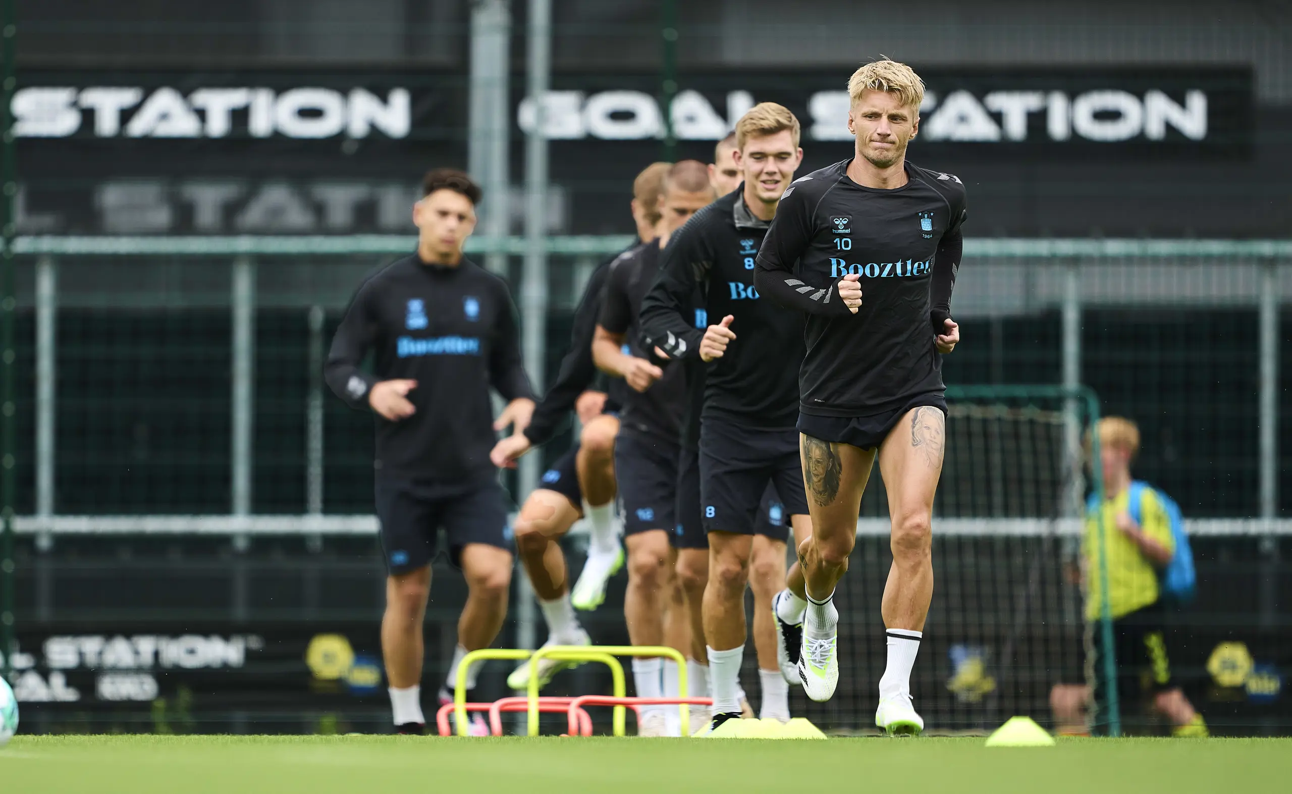 Efter de sidste spillere blev færdige med individuelle tests, blev støvlerne snøret, og så var truppen ellers klar til den første træning på græs.