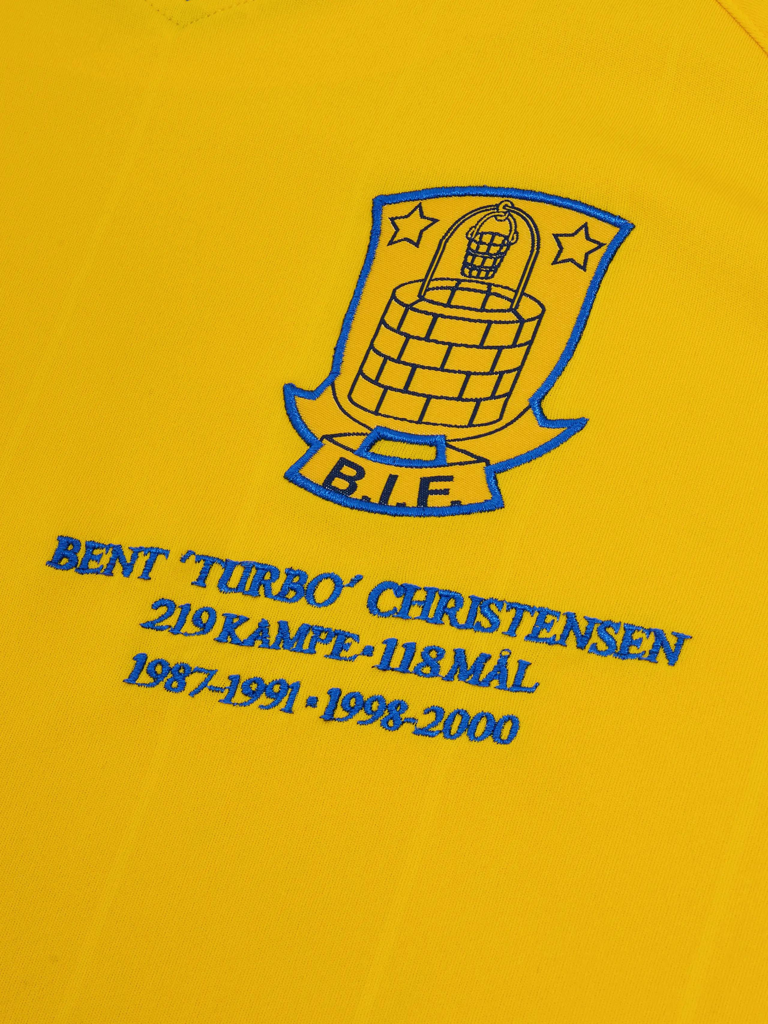 Den har polokrave og rib på ærmer, raglan-ærmer, tynde gul-i-gul striber, og har CHRISTENSEN og 10 trykt på ryggen i en retro skrifttype. På brystet er Bent 'Turbo' Christensens imponerende meritter broderet under det vævede BIF-logo.
