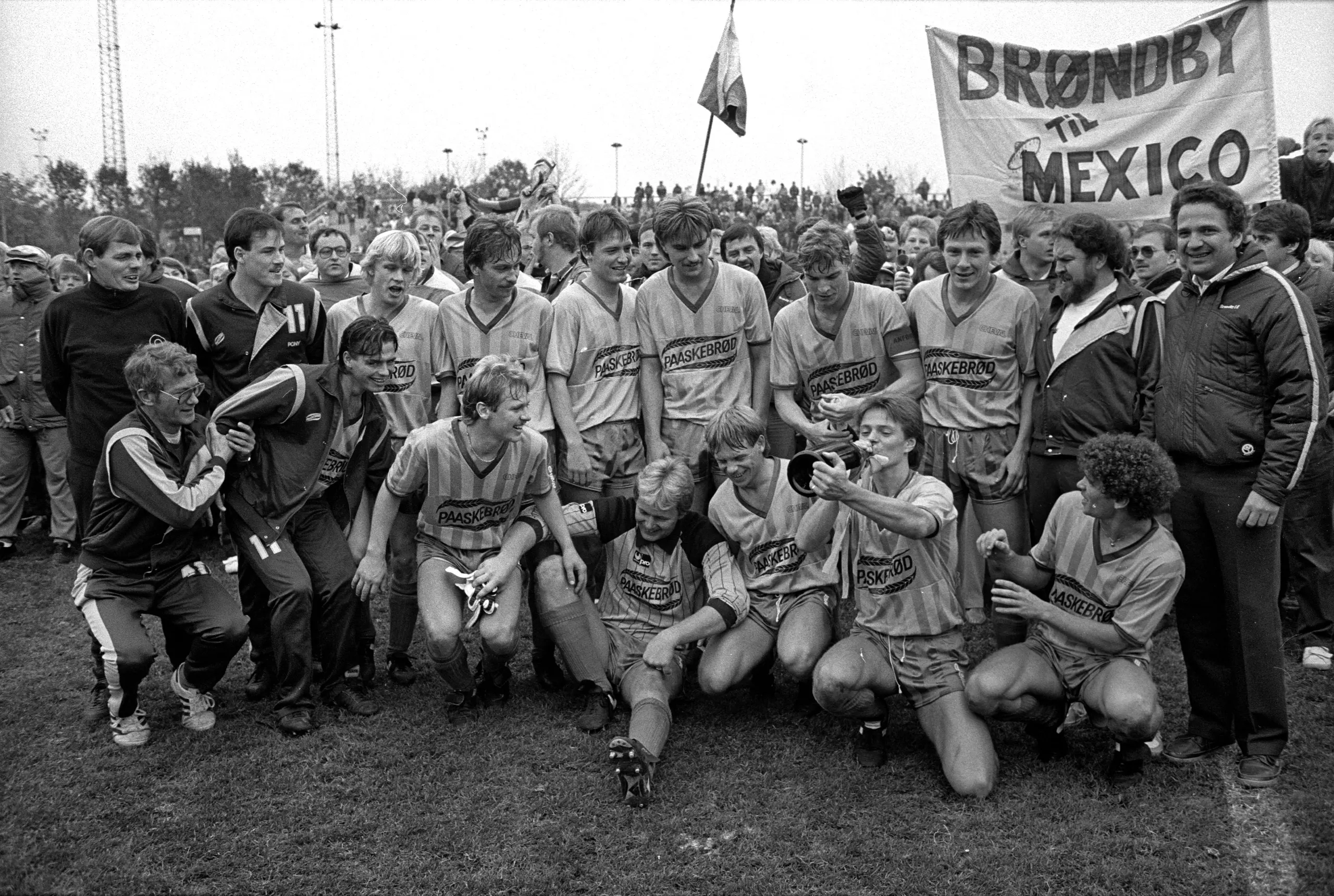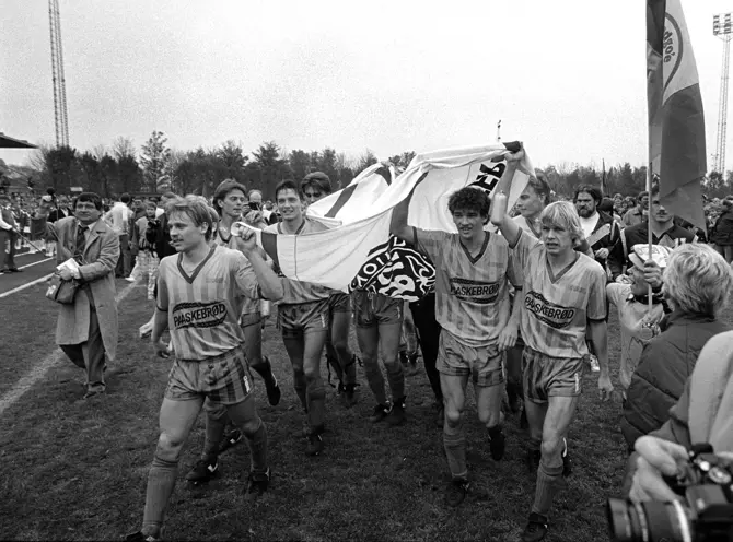 Brøndby IF's Anders Sundstrup udlignede undervejs til 1-1, mens Claus Nielsen i slutningen af opgøret kunne cementere sejren på 2-1 over Køge denne søndag i '85. Og så kunne fejringen af guldet ellers bryde løs.